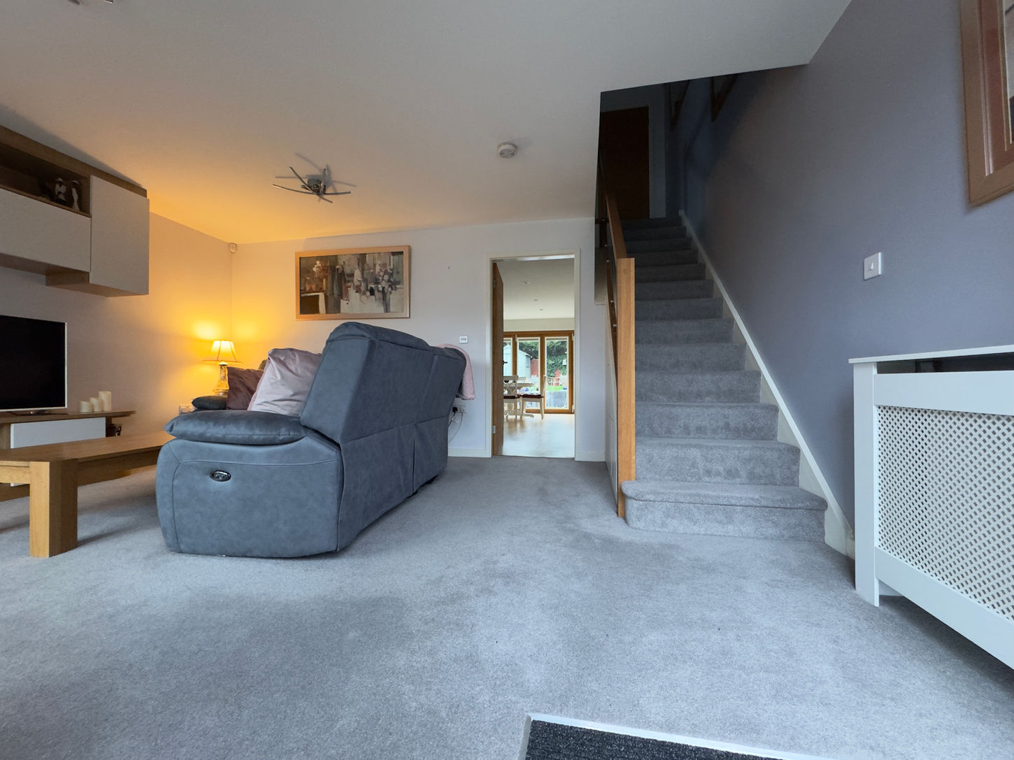 From the outset, the property impresses with its sleek modern exterior, complemented by a large driveway providing ample off-street parking. Upon entering, you are welcomed into a bright and stylish hallway, where a feature glass balustrade staircase creates an immediate sense of space and architectural elegance.